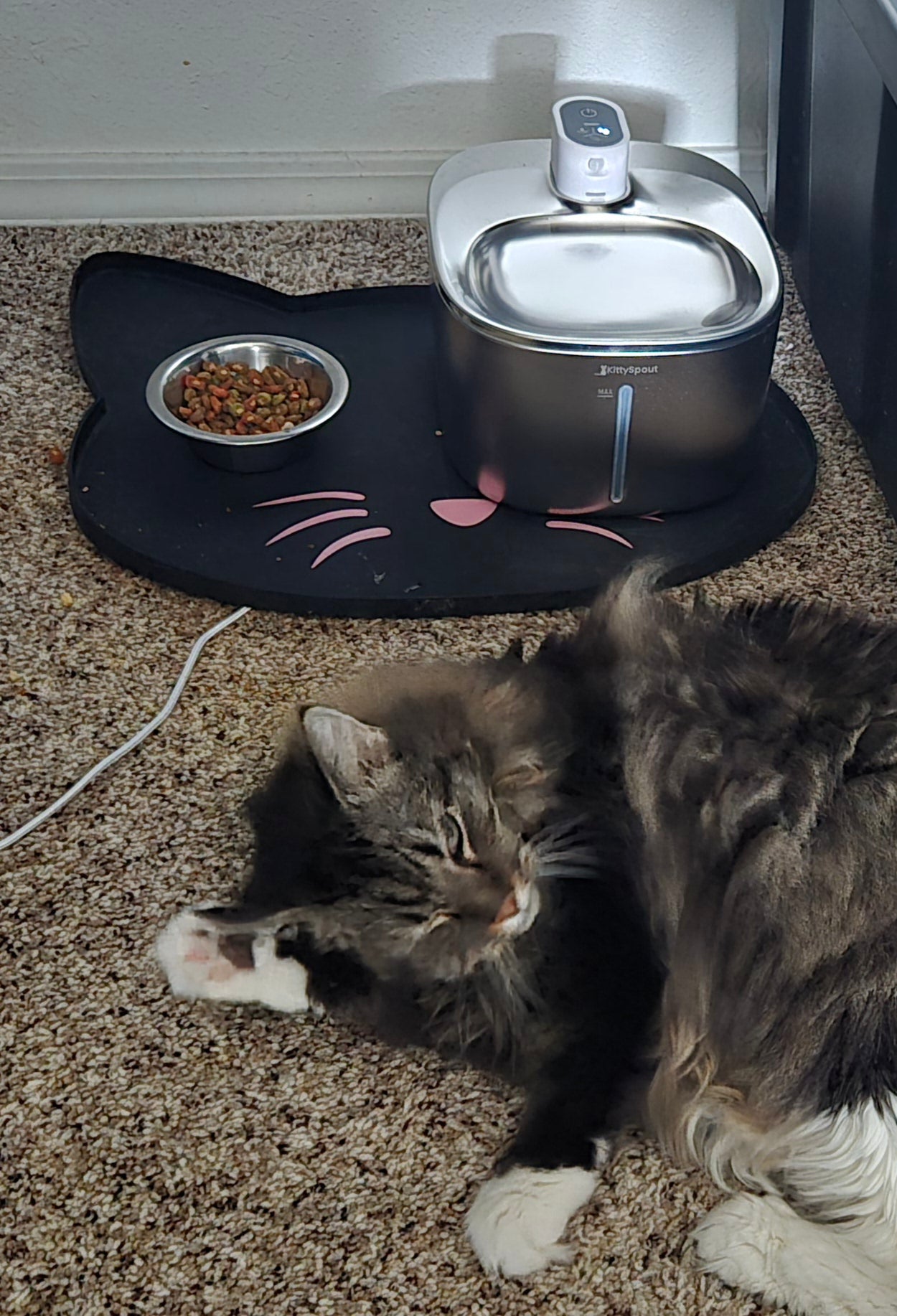 “O barulho das antigas fontes era insuportável. Esta é totalmente diferente: não se ouve, é elegante e fácil de limpar. A minha gata dorme ao lado dela e eu durmo tranquila. O AquaMiau mudou completamente a nossa rotina.”