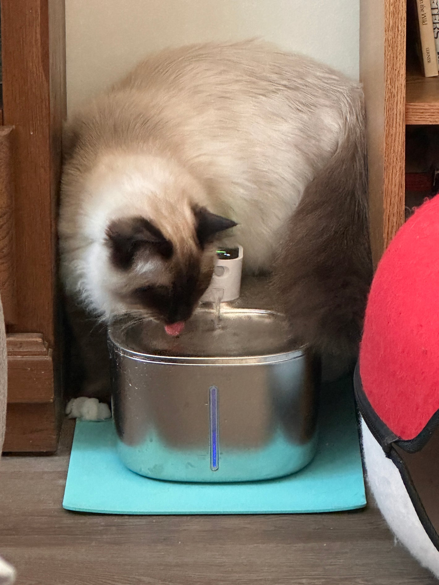 3️⃣ O seu gato segue o instinto natural e bebe sempre que quiser — como se fosse água corrente.