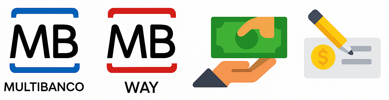 Pode pagar con Multibanco, MB Way, Dinheiro ou Cheque Bancário na entrega.
