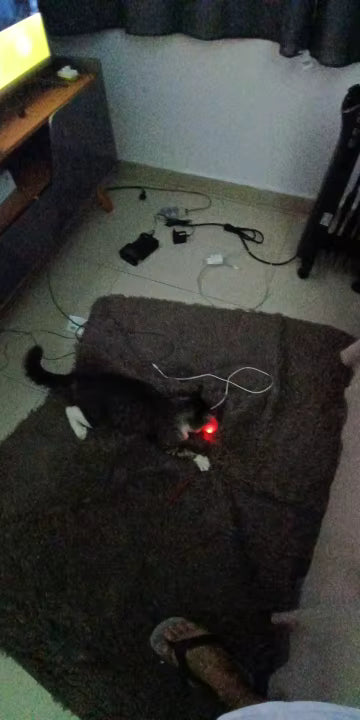Design pensado para uso interior, recarregável por USB, autonomia de longa duração e materiais amigos dos animais.